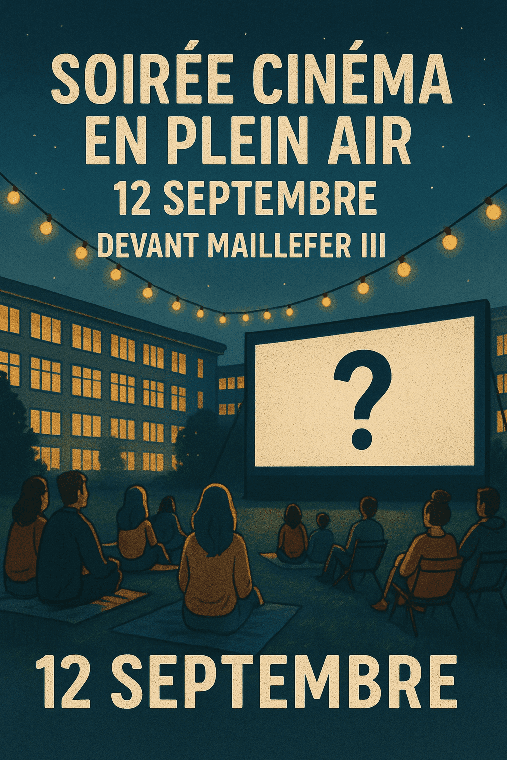 Une soirée cinéma est programmée le 12 septembre au soir, en plein air devant Maillefer III, bâtiments 63-65.